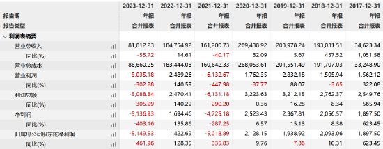 2021年和2022年,庚星股份营业收入分别为16.12亿元和18.48亿元,同比分别下降40.17%、增长14.61%;净利润分别为-4275万元和1694万元,同比分别下降287%、增长135%;然而2023年业绩又出现“双降”。全年实现营收8.18亿元,同比下降55.72%;净亏损约为-5136.93万元,同比大降403.16%,由盈转亏。
