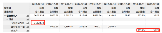 2005年,银星智业入主“*ST冰熊”,更名为东方银星。重组之后的东方银星,转向房地产业。然而,2010年之后,东方银星的房地产业务进入停滞状态,没有相关收入,2012年-2016年开始依靠建材贸易获得微薄利润,勉强可以超过1000万元左右的营收,没有退市。