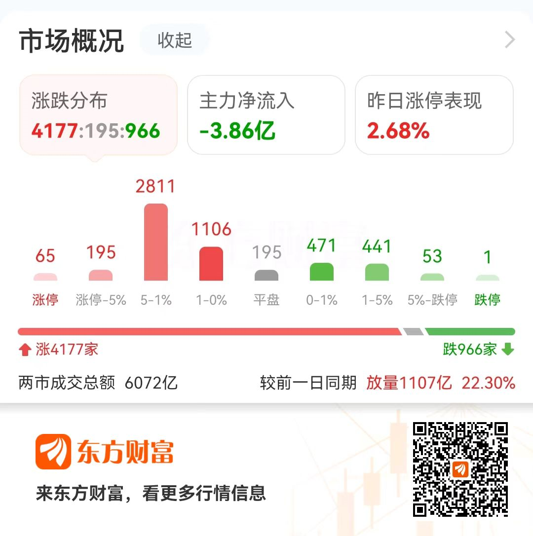 今日(8月29日)市场全天震荡分化,深成指创业板指反弹,沪指调整,两市成交额6072亿,较上个交易日放量1107亿。截至收盘,沪指跌0.5%,深成指涨0.94%,创业板指涨0.65%。